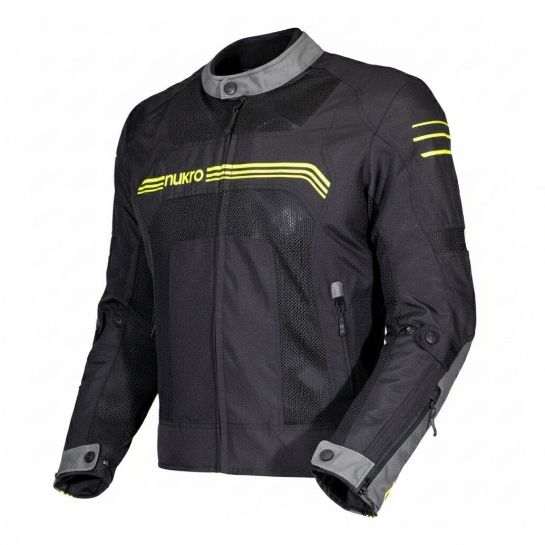 Nukrowear Guardio, üç mevsim boyunca (ilkbahar, yaz, sonbahar) kullanım için tasarlanmış, konforlu ve koruyucu bir motosiklet montudur.